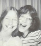 portal. It’s small, and when you pull the curtain closed, you lose contact with the outside world, making it easy for the universe to swap out your year with a different one. The coolest aspect, though, is that the booth itself captures a moment in time. However, I don’t think photo booths are as exciting to today’s teens who enjoy ubiquitous selfies as they were to my generation. (I put some of my own photo booth pics on the right for those not familiar with the medium. It was such fun to cram into those tiny booths with your friends.:))