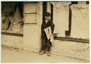 Photo by Lewis Hine, 1917. 7-year old truant newsie. Library of Congress.